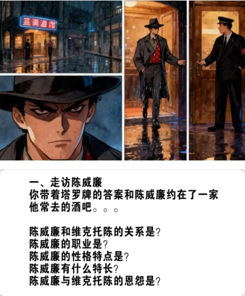 随后从第三题到第六题,选手们深入走访了四位嫌疑人。这部分的挑战在于透过表象看本质,利用塔罗牌剖析人物性格、职业背景与隐藏动机。
