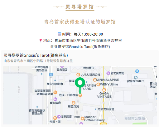 灵寻塔罗馆位于银鱼巷11号吉祥里,其独特的装修风格和浓厚的文化氛围,与周围的古建筑相得益彰,形成了一道独特的风景线。走进塔罗馆,顾客可以感受到一种神秘而优雅的氛围,仿佛置身于一个充满魔力的世界。