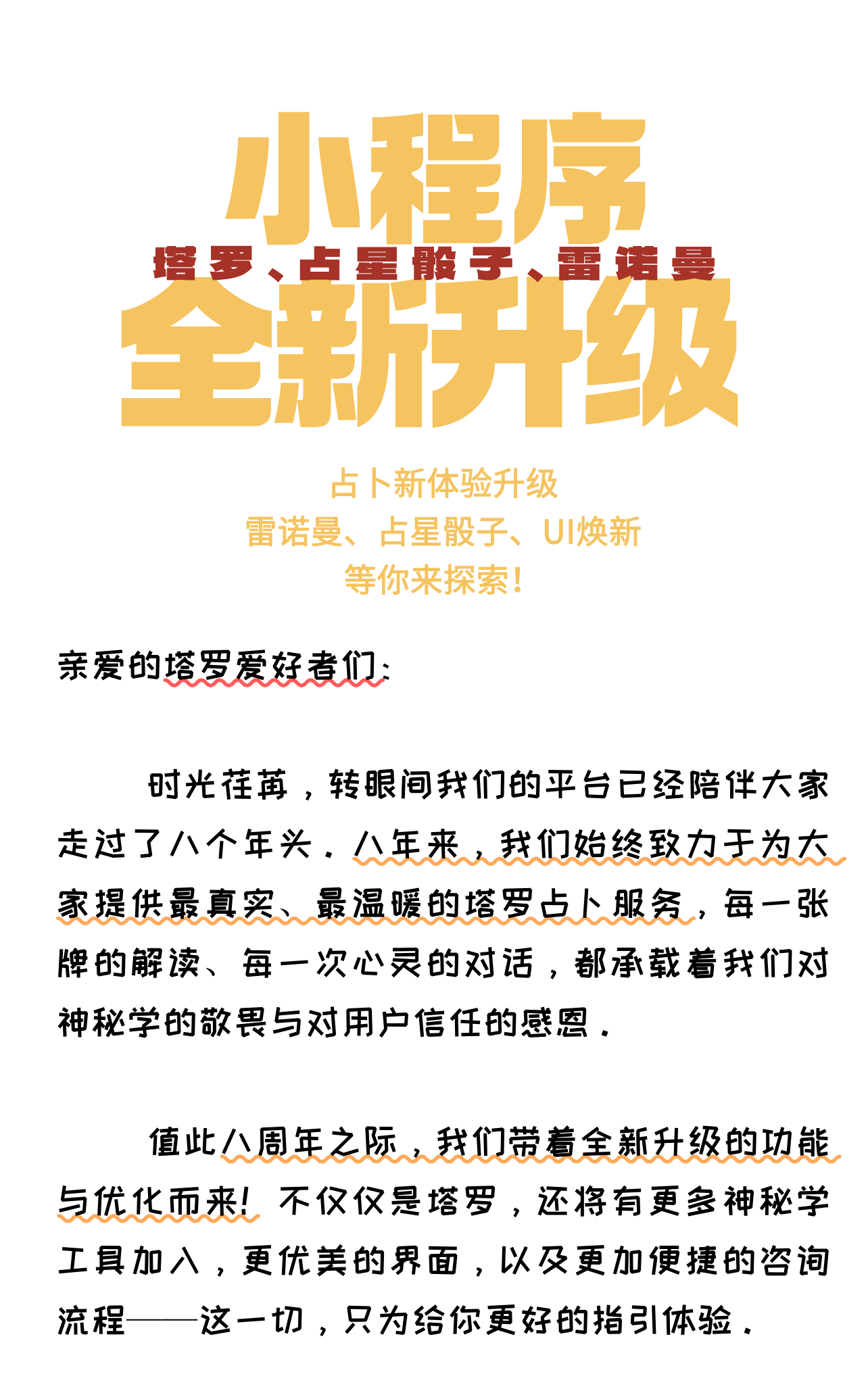 我们深知,良好的视觉感受能让你更放松地进入占卜状态。此次更新,我们对小程序整体UI进行了优化: